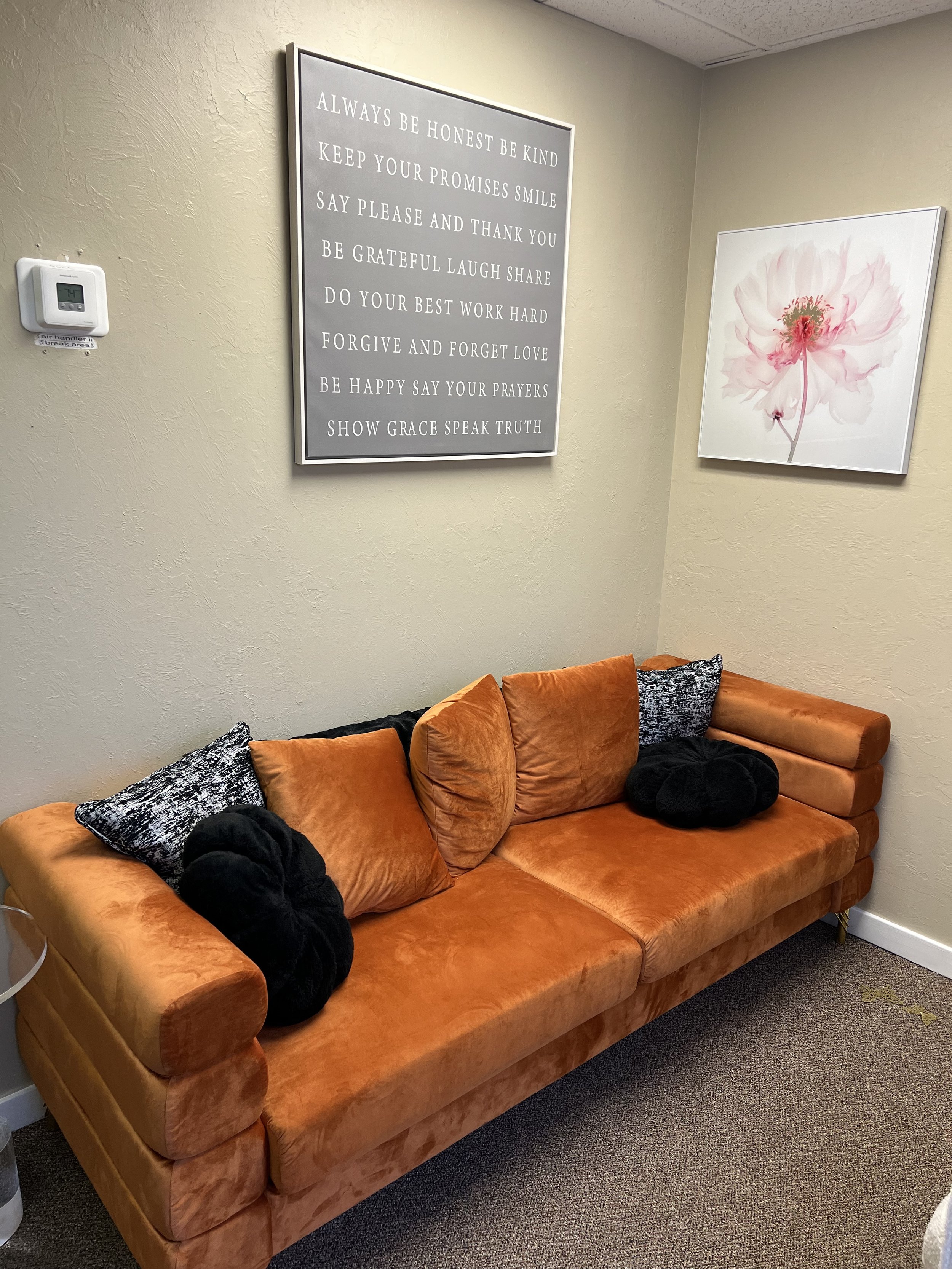 My office is filled with bold, uplifting colors and inspiring quotes that create a space full of encouragement. Clients often describe it as both energizing and a reflection of hope.